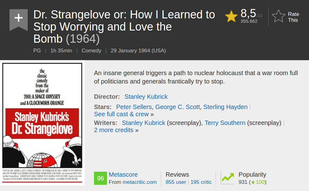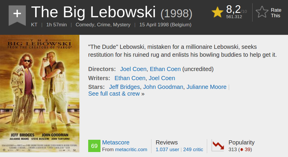This piece of the IMDB website...