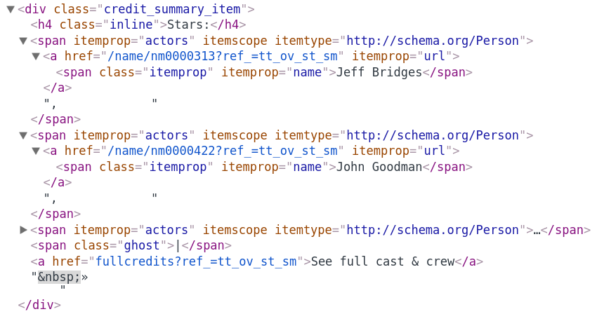 This XPath selects Jeff Bridges from the HTML example: